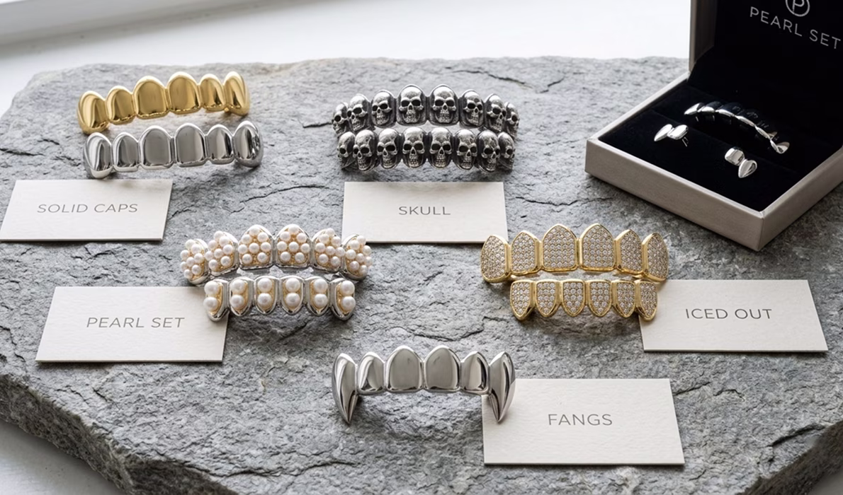 Grillz are custom dental jewelry worn over the teeth, designed to express your personality and style. Pearl Set offers high-quality grillz in silver, gold, dental gold (white or yellow), and 9, 14, or 18 ct gold, giving you plenty of options to choose the perfect material for your look.